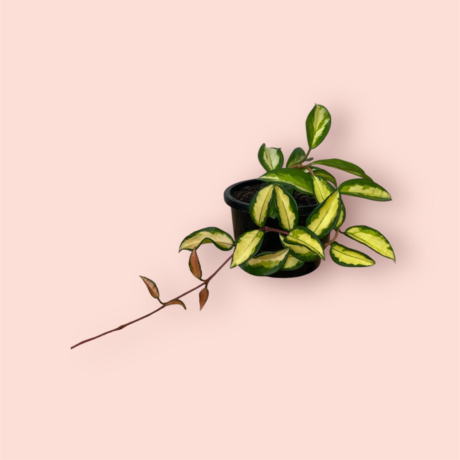 The Hoya Crimson Princess is a stunning, variegated plant with glossy green leaves with splash of cream or pink, making it a popular choice for indoor gardeners. Known for its easy care and clusters of star-shaped flowers, it adds both elegance and charm to any space.